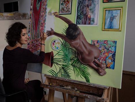L’omniprésence de la femme, de son corps nu, érotique, dans le travail de Nazanin Pouyandeh résulte, entre autres, du fait qu’elle est une femme. Bien sûr, dit-elle, « ma féminité est présente dans mon travail, mais tout comme mes origines iraniennes et la dénonciation de la censure ou la recherche de liberté du corps ; tout cela s’imprime dans l’œuvre de manière inconsciente, je ne me revendique pas peintre iranienne féministe, je suis peintre et je ne veux réduire ma liberté d’expression à aucune limite ». Forte de cette liberté, quand elle représente une vision érotique, « c’est en tant que femme mais aussi avec en tête le fantasme de l’homme, c’est un érotisme partagé qui touche autant l’homme que la femme », note-t-elle.