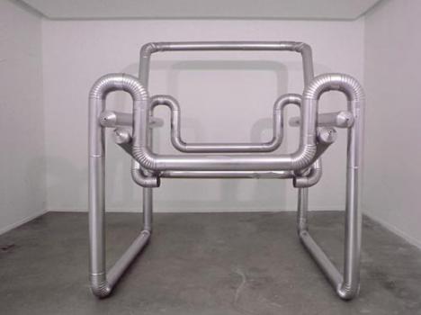 Abonnez-vous dès 1 €Légende Photo : "Sans titre" (2003) - aspirateurs à fumée et tuyaux de cheminée en acier anodisé - collection FRAC Ile-de-France