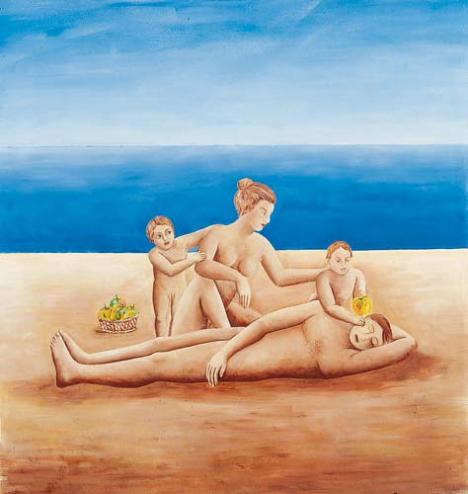 Abonnez-vous dès 1 €Louis Cane, Eve, Adam, Caïn et Abel, 1998, 190 x 180 cm, huile sur toile, courtesy Louis Cane et Galerie Bernard Ceysson.