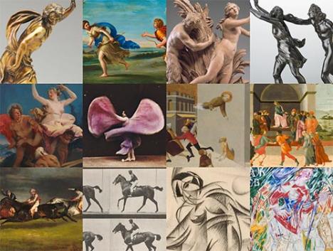 Sur le papier – dans la pratique c’est moins lisible -, le parcours comprend quatre étapes. Une première salle fait office d’introduction en montrant comment les différentes disciplines, sculpture, dessin, ont représenté le mouvement. Suit une section censée expliquer comment les premiers artistes, ne sachant pas comment représenter le mouvement, ont adopté des codes pour suggérer celui-ci : la jambe gauche mise en avant dans la statuaire égyptienne, le contraposto (chiasme) grec… La troisième salle, plus grande, accueille les deux derniers thèmes, l’un sur la décomposition du mouvement, l’autre sur la danse. La chronophotographie d’Edward Muybridge bien sûr, mais aussi un tableau de Filippino Lippi qui représente plusieurs épisodes de la vie de Virgile dans un même lieu, illustrent notamment la division du temps. Des statuettes grecques sont là pour rappeler que Nijinski et Isadora Duncan se sont inspirés l’un et l’autre des représentations antiques de la danse pour concevoir leur chorégraphie.