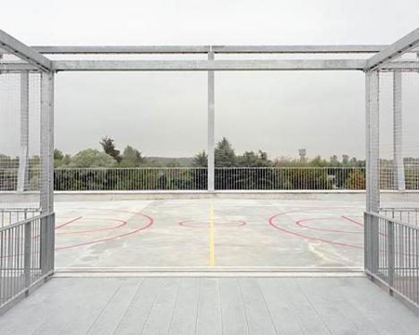 Abonnez-vous dès 1 €Vue du Lieu de vie, conçu par les architectes Gilles Delalex et Yves Moreau de l'agence Muoto sur le campus de Saclay (Essonne). Restaurant universitaire surmonté d’un terrain de sport. © Courtesy Studio Moto / photo Maxime Delvaux 2016