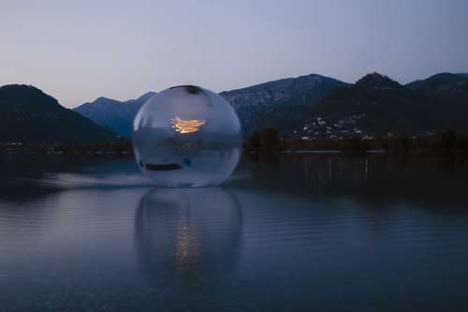 Abonnez-vous dès 1 €Vivien Roubaud, Gonflable, contrepoids, transmission scooter électrique, lustres à pampilles, collecteur tournant, chaîne de moto, vingt-quatre volts, 2015, diam. : 3m. Courtesy Galerie in situ Fabienne Leclerc, Paris.