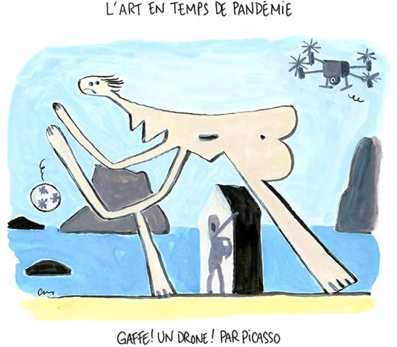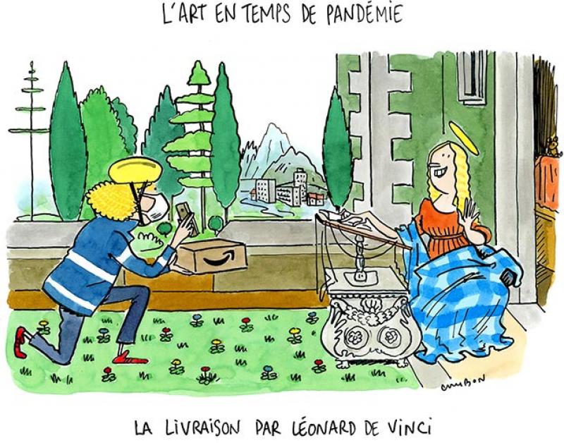 Notre dessinateur Michel Cambon met à l’épreuve du virus, avec son humour habituel, tableaux et sculptures les plus connus.