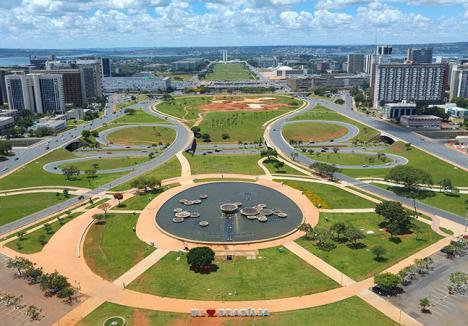 Le Parlement aux deux demi-sphères, le palais présidentiel du Planalto et la Cour suprême fédérale sont situés sur la Place des Trois Pouvoirs, "centre de la circonférence" et "cœur de la cité".