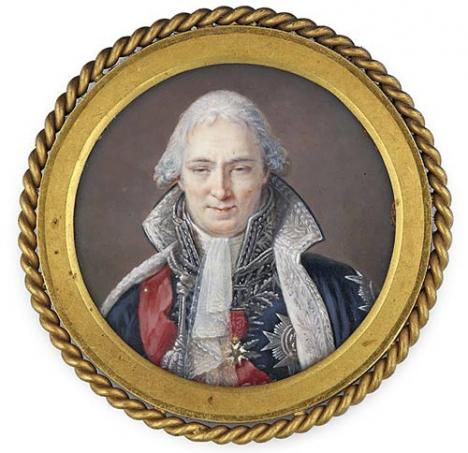 Abonnez-vous dès 1 €Atelier de Claude Gautherot, Portrait de Jean-Etienne-Marie Portalis (vers 1806) - Miniature ronde sur ivoire dans un cadre ancien en bronze doré - D: 6,5cm - Estimé 2.000/2.500 euros - Adjugé 6.000 euros - Vente du 24 novembre 2012 chez Damien Lèclère - Photo www.damienleclere.auction.fr