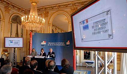 La ministre de la Culture Christine Albanel a présenté, le 29 janvier, le bilan de dix ans d’activité de la Commission de récolement des œuvres d’art ainsi que le guide édité par la commission de marquage des collections publiques, en présence des présidents de chacune de ces commissions, Jean-Pierre Bady et Christiane Naffah.