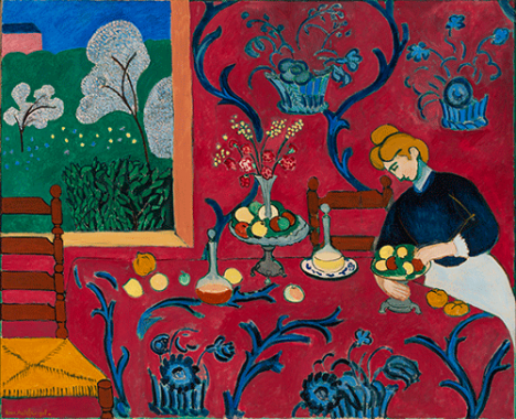Henri Matisse, La Desserte, Harmonie en rouge, printemps-été 1908, huile sur toile, Musée de l’Ermitage, Saint-Pétersbourg. Courtesy Musée d’État de l’Ermitage, Saint-Pétersbourg.