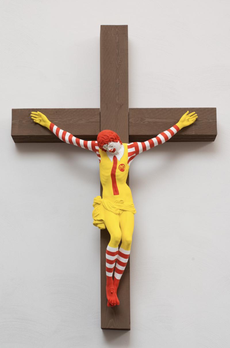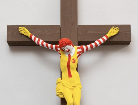 McJesus, une sculpture de Ronald McDonald de l'artiste finlandais Jani Leinonen, est actuellement exposée au musée d'art de Haïfa (nord), accompagnée d'une figurine représentant Jésus sous la forme d'une poupée Ken crucifiée et souriante. Ces deux œuvres font partie de "Sacred Goods" (biens sacrés), une exposition sur le consumérisme inaugurée en août dans cette ville côtière.