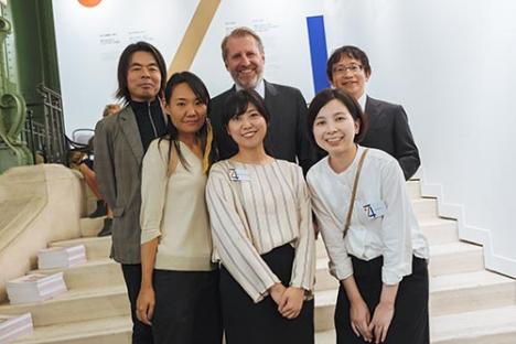 De gauche à droite, au fond : Katsuhiko Hibino, artiste et doyen de l’université des arts de Tokyo, Guillaume de Seynes, président du Comité Colbert, Kazuhiko Hachiya, artiste et professeur à l’université des arts de Tokyo