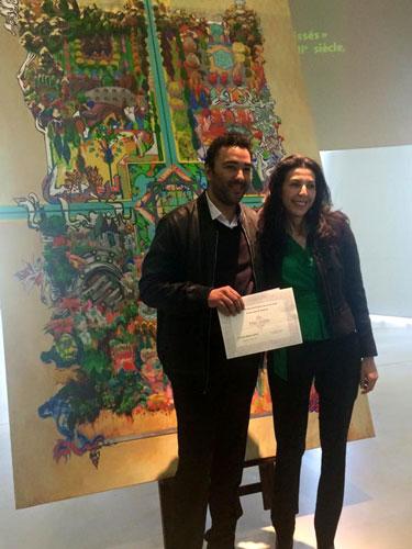 Abonnez-vous dès 1 €Slimane Ismaili Alaoui aux côtés de Soumia Belaidi Malinbaum, présidente de la SAIMA, lors de la remise du prix le 1er avril 2016 © Photo Nassyo - Source Facebook