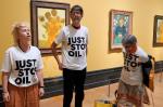 Quelques heures après l’annonce de la condamnation des deux militantes, trois activistes de Just Stop Oil ont aspergé à nouveau deux des Tournesols de Van Gogh à la National Gallery.