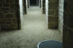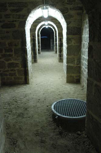 Veit Stratmann l’a bien compris qui, invité à intervenir pour l’accrochage inaugural, a fait produire une vingtaine de plateformes métalliques, de 90 centimètres de diamètre, légèrement inscrites au-dessus du sol, sur lesquelles seule une personne peut prendre place (Sans titre (Pour le fort), 2008). Disséminés en extérieur, jamais dans des endroits spectaculaires ou trop en vue, ces dispositifs convient à la découverte de la nature environnante mais aussi du bâti, en offrant des points de vue inédits et parfois surprenants. De l’autre côté, la rigueur de l’architecture militaire se fait très présente à l’intérieur. Ce d’autant plus que l’un des partis pris du cabinet Rue Royale Architectes (Michel Essertier), à Lyon, a consisté à juste titre à conserver l’intégrité du bâti. Le corps de bâtiment principal s’est ainsi vu réaménager en cinq galeries d’expositions juxtaposées les unes aux autres, distribuées par un long couloir. Il faudra pour Sandra Cattini, chef de projet et directrice artistique, affirmer une grande cohérence dans la scénographie de ses expositions afin d’éviter la dilution dans ces espaces segmentés.