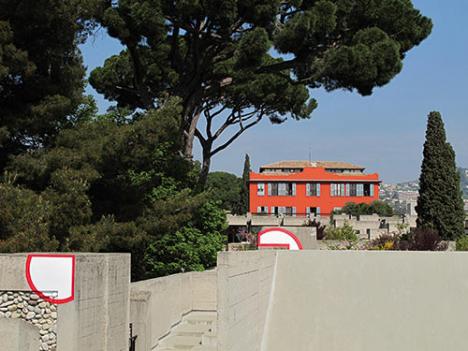 La Villa Arson, vue de la terrasse sud avec l'oeuvre de Felice Varini, Points de vue, 1984. © Villa Arson, Nice.