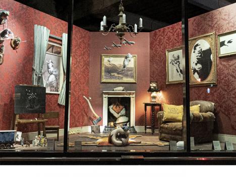 À bien des égards, il l’était déjà : son Walled Off Hotel à Bethléem compte une boutique cadeaux, tout comme en 2015 son éphémère parc d’attractions, Dismaland. Surtout, ses coups d’éclat médiatiques, sa popularité et ses records en salles des ventes ont valu à certains de ses pochoirs de très lucratives contrefaçons. Fataliste, l’artiste a d’abord laissé faire – question de cohérence. Avant de contre-attaquer : fin 2018, la société Pest Control Office Limited, gestionnaire de ses droits, engageait des poursuites contre le Mudec, à Milan, dont la boutique proposait à la vente des produits dérivés reproduisant ses œuvres dans le cadre de l’exposition « The Art of Banksy. A visual Protest » – le tout sans son consentement. En mars 2019, elle devait aussi faire face à une procédure engagée par l’éditeur anglais de cartes postales Full Colour Black. Rompue à la reproduction de certains pochoirs iconiques de Banksy, la société demandait l’invalidation des marques déposées par Pest Control Office Limited en 2014 pour une vingtaine d’œuvres, dont le Le Lanceur de fleurs et La Petite Fille au ballon rouge. Motif invoqué : la déchéance de ses droits car, selon cette société, ces marques n’avaient fait l’objet d’aucune exploitation commerciale, comme le requiert pourtant la loi.