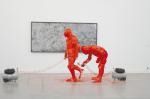 Si l’exposition « Tableaux » semble au premier abord insister sur la diversité des supports accaparés par la peinture, à l’exemple de l’installation de Lili Reynaud-Dewar ou du rébus conceptuel de Benoît Maire, c’est dans la rencontre entre la peinture et la performance que se caractérise ce panorama. Quand la peinture n’est pas « l’après « de l’événement, elle se donne comme le décor d’un théâtre à venir, à l’image de la Forêt orange d’Ulla von Brandenburg qui recouvre les murs de la « Rue » du Magasin, en attendant d’être activée par une performance.