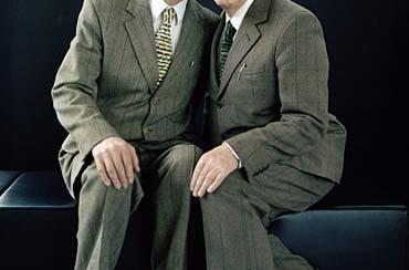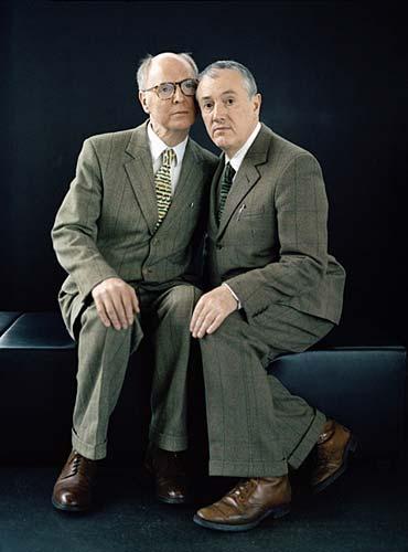 À peine sortis de la Saint Martin’s School à Londres, la plus prestigieuse école d’art de Grande-Bretagne, où ils se sont rencontrés dans les années 1960, Gilbert & George jouent les « Sculptures vivantes » dans les musées. Vissés sur leur socle, dans des complets très british, ils n’hésitent pas à s’engager physiquement dans l’art, puis à se mettre en scène dans des photographies retouchées. Presque quarante ans plus tard, toujours dans leurs costumes de tweed à la coupe impeccable, Gilbert & George sont devenus des icônes vivantes. À l’occasion de leur exposition au Musée d’art moderne de Saint-Étienne, nous avons rencontré l’un des duos les plus chic et choc de l’histoire de l’art britannique.