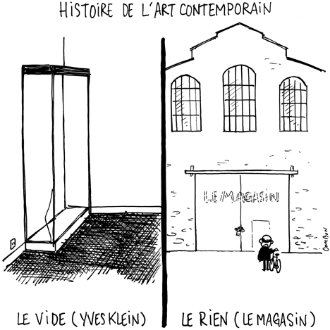 Ce dessin a été inspiré par l'article « Rien ne va plus au Magasin, le centre d’art de Grenoble »