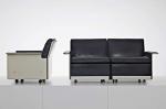Pour Vitsœ, Dieter Rams crée les étagères 606 : une structure métallique très mince, qui peut s’allonger à l’envi grâce à de judicieuses glissières verticales perforées. Elles sont quasi invisibles. Normal : depuis les années 1950, le designer tente d’user le moins de matière possible. Son credo : apporter plus de lumière et de transparence dans les espaces réduits des logements sociaux de l’après-guerre. Son « fauteuil club » 620 est aussi confortable qu’un Chesterfield, mais sa structure est constituée de fines coques de plastique moulées qui font office de dossier et d’accoudoirs. Lors de ses séjours au Japon, Rams est d’ailleurs fasciné par les solutions domestiques qu’adopte cette population à la forte densité. Sa gamme de meubles de jardins empilable 740 s’articule autour d’un module qui, selon les situations, se fait coussin de sol, tabouret, voire chaise ou table en y ajoutant un dossier ou un plateau.