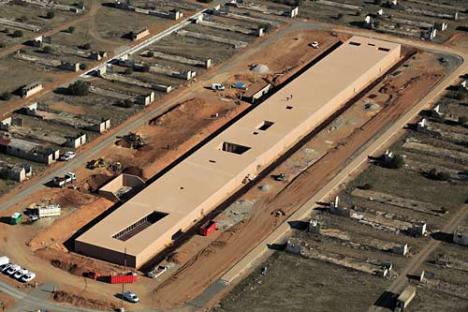 Rivesaltes Sans doute est-ce vu d’avion que le bâtiment est le plus intriguant, tant il ressemble à un édifice que des archéologues auraient mis au jour il y a peu.