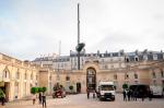 Ce mercredi 24 juillet, les deux nouvelles rampes d’accès en métal de l’Élysée sont entrées dans la Cour d’honneur d’une manière spectaculaire. L’installation a commencé vers 7 heures du matin et s’est terminée aux alentours de 12h. Les artisans qui ont réalisé « Fleuves de France », l’œuvre de Pablo Reinoso, ont accompagné le ballet de camions et de grues qui s’est orchestré toute la matinée devant le Palais de l’Elysée.