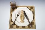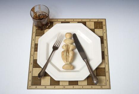 Meret Oppenheim, Bon Appétit, Marcel ! (La Reine blanche), 1966-1978, matériaux divers ; 32 x 32 x 3 cm, collection Foster Goldstrom. © Photo : Chris Puttere.
