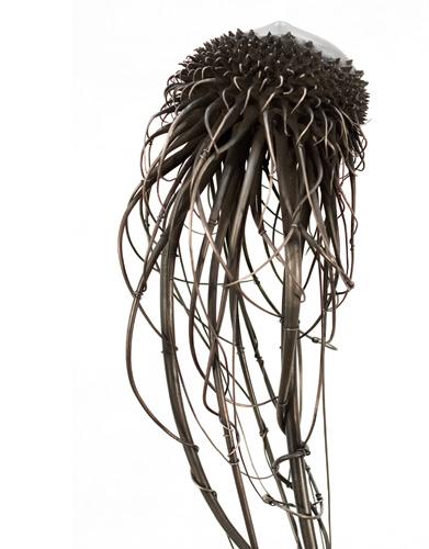 Ayant obtenu deux diplômes des Métiers d'Art, options métal et broderie, Mylinh Nguyen est un tourneur fraiseur qui travaille avec minutie. Ses méduses font partie d'une série initiée il y a quelques années sur le thème du mouvement de la nage. Elles illustrent un fin travail d'usinage, qui produit beaucoup de déchets : « C'est aussi intéressant de penser par le vide », sourit l'artiste. Ses trente ans à peine passés, la jeune Bretonne profitera des 50 000 euros empochés pour s'offrir un matériel de qualité supérieure.