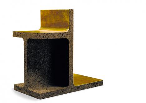 Mais point n’est besoin d’un interrogatoire en règle d’Éric Benqué, 42 ans, designer, sur ledit objet : « C’est une proposition de dialogue entre des matières. Ici, la brillance de l’or vient épouser la sombre matité du liège », explique-t-il. Ainsi, cette sellette est-elle constituée de pans de liège expansé assemblés, puis partiellement dorés à la feuille. Les matériaux, évidemment, ont été sélectionnés pour leurs qualités intrinsèques : « Le liège pour sa masse et sa légèreté, sa matité et sa noirceur ; l’or pour sa finesse et sa ductilité, sa couleur et son éclat. » Leur association est celle des contraires : le mat s’oppose au brillant, le sombre au lumineux, le rare au commun (ou presque…), le massif à l’extrêmement fin. Ces mariages inédits procurent, à n’en point douter, une certaine tonicité à l’objet.