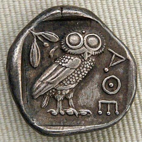 Les trafiquants échangeaient en majorité des monnaies grecques antiques datant de la période située entre le VIe siècle av. J.-C. et la période byzantine. Ici, un exemple de tétradrachme d'argent frappé par Athènes vers 450 av. J.-C. - © Photo : Marie-Lan Nguyen - 2008 - Licence CC BY 2.5