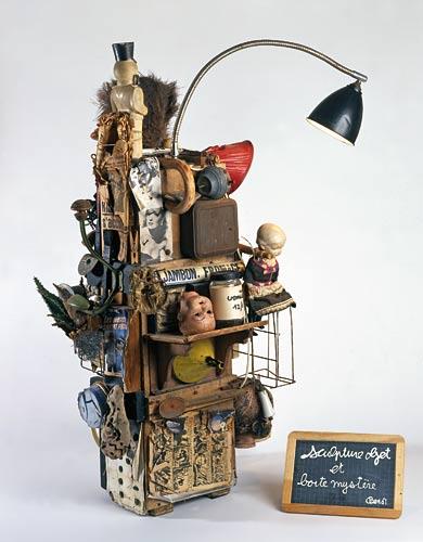 Ben, Sculpture objet et boîte mystère, 1958-1962, assemblage d’objets, 105 x 60 x 50 cm, collection de l’artiste. © Ben.