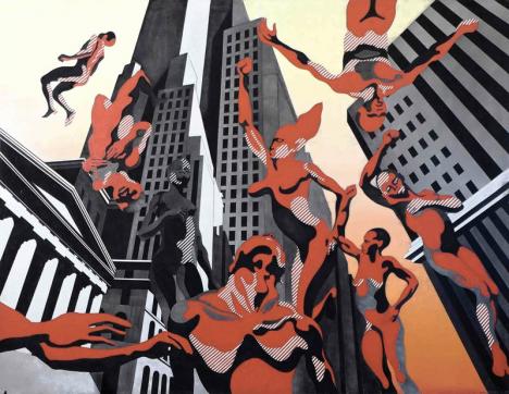 Ainsi, l’œuvre de Cueco oscille-t-elle entre l’histoire de l’art et un regard critique, lucide et ironique, sur la société, sans véritable ligne de démarcation, car quand il rend un hommage respectueusement irrévérencieux à la Danaé de Rembrandt, il la déménage dans un HLM. Cependant, c’est l’œuvre aux accents politiques de Cueco, la série « Les Hommes rouges », qui se trouve au cœur de l’exposition. Nés des événements de 1968, ces personnages ou ces silhouettes dont Les Sables d’Olonne possèdent La Rue (1969, voir ill.) sont des anonymes qui tentent de se libérer du carcan imposé par la rigidité de l’ordre social. Virevoltants, parfois flottants ou tête à l’envers, jamais isolés, ils forment une foule ou, pour employer un titre de Cueco, une Meute (1968-1970). Rien de didactique ici : « J’ai tenté de montrer le désordre comme un ordre, la violence comme nécessité détestable et jubilatoire », déclare-t-il. Stylisés, réduits à des contours nets et à une couleur vive, Les Homme rouges sont le résultat d’une élaboration plastique qui n’a rien à envier aux images de la mouvance du pop art. D’ailleurs, dans un patio en verre, trône une installation monumentale et dynamique, composée de personnages rouges et noirs en contreplaqué découpé, tous pratiquement hors sol. Cette Grande Manifestation (1969-1970) a été présentée dans « The World Goes Pop » à la Tate Modern de Londres en 2015. Mais on le sait, on n’est jamais prophète en son pays.