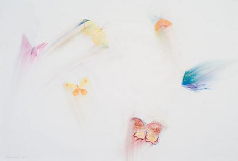 Daniel Dezeuze, Vol de papillons, étude, 2004, pastel sur canson. © Daniel Dezeuze, courtesy Galerie Templon, Paris et Bruxelles.