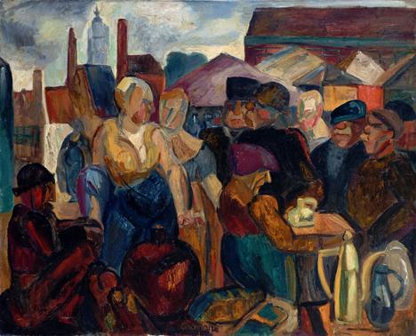 Formé à Paris à une période encore dominée par le cubisme, Marcel Gromaire, à l’image de Fernand Léger qu’il admire, élabore un style personnel que l’on peut qualifier de « réalisme synthétique », en géométrisant les figures humaines à l’aide de formes architecturées et schématisées. Les formes, transformées et agrandies, renforcées et éclaircies, aboutissent à une condensation picturale qui impose sa puissance sans aucune médiation. Les personnages, comme les bâtisses du fond, ont des couleurs sombres, à dominante brune ou ocre. Les thèmes traités sont d’inspiration populaire, ce qui dénote des préoccupations sociales et humanitaires. C’est un monde rude de travailleurs comme le montrent l’imposant Marché de Wazemmes (1914, voir ill.), ou Les Terrassiers, 1927. Gromaire s’intéresse ainsi avant tout au milieu populaire – Le Dimanche en banlieue, 1927 – sans oublier les paysans d’Orage sur le blé, 1938. On songe à l’expressionnisme belge – avant tout à Constant Permeke – mais moins tourmenté, moins agressif, plus terrien que celui qui est pratiqué en Flandre.