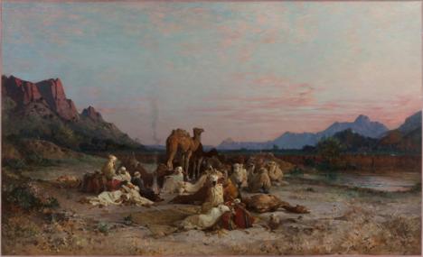 Souvent célébré au Salon, de 1861 jusqu’à sa mort en 1887, l’orientaliste Gustave Achille Guillaumet a connu une traversée du désert au XXe siècle. Pour la commissaire scientifique et spécialiste du peintre, Marie Gautheron, son œuvre a été éclipsé par celui de Fromentin, bien meilleur écrivain. Publiés à titre posthume, les Tableaux algériens de Guillaumet constituent davantage une illustration écrite de ses tableaux qu’un ouvrage d’ambition littéraire. La peinture de Guillaumet n’a pourtant rien à envier à celle de son aîné. Elle comprend même un tableau qui a l’étoffe d’un véritable chef-d’œuvre, Le Sahara, qui a sidéré le public au Salon de 1868 et a été abondamment commenté à travers le temps. Parfois vue comme précurseuse de l’abstraction ou du surréalisme, cette vision dépouillée et désolée du désert où gît le cadavre d’un dromadaire (prêtée par Orsay comme nombre d’œuvres de l’exposition) a été prise aussi comme sujet d’études postcoloniales pour le vide de son paysage qui refléterait celui d’un territoire ouvert à l’occupation européenne.