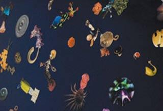 Abonnez-vous dès 1 €Hugues Reip - Deep night music (Hommage à Oyvind Fahlstrom) - Illustrations sur aimants/tôlt peinte - site internet de l'exposition : www.chamarande.essonne.fr