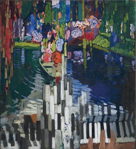 Vivant à Puteaux (Hauts-de-Seine), Kupka s’intéresse aux recherches de ses voisins, les cubistes de la Section d’or, tout en continuant à réaliser des toiles d’inspiration fauve (La Gamme jaune, 1907). En 1909 il peint l’un de ses tableaux les plus connus, Les Touches de piano. Le lac, faisant partie de ses « Nocturnes ». Les formes géométriques, qui évoquent les touches du piano, rappellent les rapports entre la peinture et la musique, cette dernière étant assimilée à l’expression de la spiritualité pure.