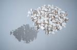 Ailleurs, Le Refuge (2007) de Stéphane Thidet est une démonstration spectaculaire de la notion d’isolement volontaire ou forcé : une cabane en bois, pas vraiment étanche, sommairement meublée et sur laquelle se déversent des pluies torrentielles. Manifestement, ce lieu de rêve qui remonte à notre enfance est en train de prendre l’eau. Ailleurs encore, une remarquable installation d’Olivier Crouzel est composée d’une vidéo devant laquelle l’artiste a posé un tas de sable de ponce (Yali, 2017-2022). Les images présentent un groupe de touristes qui débarquent sur une île grecque, Yali, dont une partie est occupée par une carrière de sable en activité. Autrement dit, le tourisme de masse en quête d’un endroit idyllique face à une réalité concrète nettement moins séduisante. Enfin, ce sont des cartes, ces images du monde inexistant, recyclées, redessinées sur des supports inhabituels, parfois même traduites en signes abstraits (Aurélien Mauplot, Benoît Billotte, Brankica Zilovic). À la sortie, une constellation de coquillages suspendus en un mouvement à peine perceptible –des oscillations délicates, des « papillonnages » subtils et impalpables provoqués par le souffle d’un ventilateur. Cette œuvre de Stéphane Clor (Sans titre, cycle « Imaginary Soundscape », 2016) est une dernière touche de grâce dans un trajet qui n’en manque pas.
