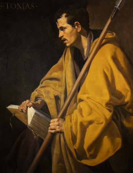Orléans. De profil, vêtu d’un drapé orangé, l’air surpris, il semble qu’il vienne tout juste de lever le regard de l’ouvrage qu’il agrippe fermement. Ce Saint Thomas de Velásquez est un chef-d’œuvre de la peinture espagnole des collections françaises, qui ne comptent que deux toiles à être assurément de la main du maître (outre celle d’Orléans, le Démocrite de Rouen).
