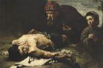 La peinture d’histoire, chez Ribot « se cantonne à la peinture religieuse et à la fable », précise Axel Hémery. C’est là qu’il suit le plus fidèlement les leçons des peintres ténébristes espagnols. « Il leur a non pas volé leur manière mais demandé leur secret », écrivait le critique Jules Claretie. Dans la lignée de José de Ribera, Ribot, avec Saint Vincent (1867) et Le Bon Samaritain (1870, (voir ill.]), montre des corps abandonnés, violemment éclairés sur un fond plongé dans l’ombre, les creux de la chair peints d’un noir profond. Plus radical encore, Les Philosophes (1869) fait surgir de la nuit quatre têtes, trois mains et un livre. L’œuvre est mise en comparaison avec Le Penseur (n. d.) de Stanislas Torrents et un tableau d’un élève de Ribera, Philosophe de l’école cynique (non daté), du Napolitain Francesco Fracanzano. Démocrite (1630) de Ribera clôt magnifiquement la démonstration.