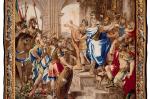 Ailleurs, c’est l’épopée de Scipion l’Africain qui est narrée dans ce magnifique ensemble de quatre tapisseries commandé aux meilleurs ateliers de Bruxelles par un certain Luis de Benavides, marquis de Caracena, gouverneur général des Pays-Bas espagnols. Rappelons qu’à l’époque de Rubens, les artistes, les cartons comme les commanditaires circulaient à travers toute l’Europe… Mais le clou de l’exposition est, sans conteste, cette extraordinaire tenture représentant l’histoire de l’empereur Constantin déroulée sur pas moins de sept tapisseries ! Passé à la postérité sous l’épithète glorieuse de « Grand », le souverain incarnait aussi aux yeux des hommes du XVIIe siècle la figure idéale du premier « roi chrétien ». Bel exemple d’appropriation idéologique…