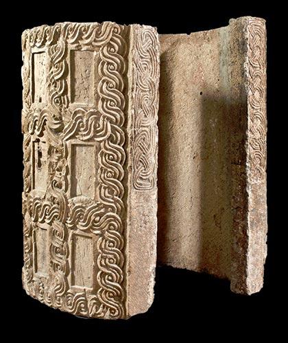 Ambon, ancienne église abbatiale de Saint-Willibrod à Echternach, Luxembourg, fouilles de 1951 dans la basilique d’Echternach, début du VIIIe siècle, calcaire corallien © Musée national d’Histoire et d’Art de Luxembourg.