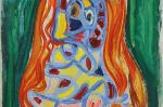 Le Musée de Silkeborg a réuni des toiles majeures des deux peintres. Un véritable feu d’artifice : 17 peintures et 28 gravures de Munch face à 36 peintures et 25 œuvres sur papier de Jorn. Les grandes œuvres symbolistes de Munch (Vampire, Le Cri, Le Baiser, Nuit d’été, La Puberté, etc.) et ses toiles tardives (Le modèle près de la chaise en osier, 1919-1921) prêtées par l’institution d’Oslo sont confrontées à des chefs-d’œuvre de Jorn. On peine néanmoins à discerner l’articulation de cette exposition qui n’est ni thématique, ni chronologique. Les commissaires se sont contentés de faire dialoguer, dans un accrochage soigné, les œuvres de Jorn à celles de son grand prédécesseur en mettant l’accent sur celles qui l’ont le plus influencé. Passées les présentations biographiques introductives, on déplore également l’absence de panneaux explicatifs à l’intérieur du parcours de l’exposition.