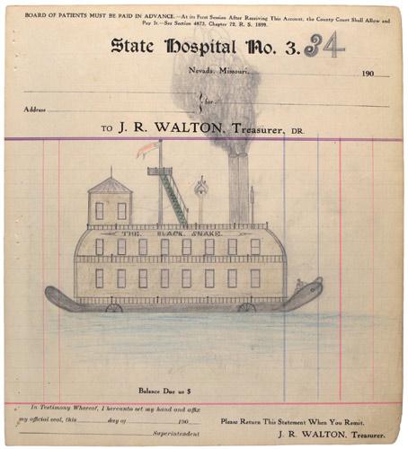 LAUSANNE - Ils ont l’air tristes, les traits figés et le visage poupin. Les personnages de James Edward Deeds (1908-1987) ouvrent de grands yeux sur le petit monde clos et surpeuplé dans lequel ils sont enfermés. L’un deux, un homme assis portant un chapeau haut de forme, a l’expression menaçante et les yeux fuyants. Le dessin, intitulé Why doctor, représentant un médecin fait sans doute allusion aux traitements brutaux par électrochocs dont l’auteur a fait l’objet dans les années 1940 et 1950. Interné à l’âge de 28 ans au State Lunatic Asylum n° 3 situé à Nevada (Missouri), James Edward Deeds passe une bonne partie de sa vie dans cette institution avant d’être transféré dans une maison de retraite où il décède en 1987. Entre 1936 et 1966, il réalise près de 300 dessins d’une grande délicatesse à la mine de plomb, à l’encre et au crayon de couleurs, sur des papiers à en-tête officiel de l’établissement psychiatrique. L’artiste a rassemblé ses dessins recto verso, numérotés et cousus page à page dans un album confectionné par ses soins. La Collection de l’Art Brut de Lausanne en a réuni 130 qui sont exposés à côté de son album en cuir, tissu et carton.