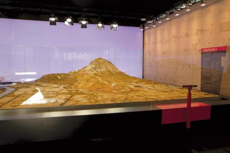 Abonnez-vous dès 1 €Vue de la scénographie de l'exposition « La France en relief », au Grand Palais, avec le plan-relief de la ville de Grenoble. © Photo : Isegoria.