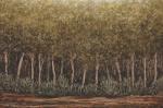 Les premières salles sont consacrées au paysage : horizons marins et/ou jungles, forêts. Le commissaire et l’artiste ont souhaité confronter les périodes de 2015 à 2025, démontrant ainsi la persévérance, l’application d’un artiste et dans le même temps d’un renouvellement permanent face à un « motif » récurrent. Giorgio Morandi (1890-1964) n’est pas très loin… à une différence près, les œuvres de Lucas Arruda sont bien plus vivantes et vibrantes que son aîné italien. Là où Morandi ajoute de la matière, Arruda, lui, procède par évidemment de la surface picturale, tel un sculpteur face à son morceau de marbre, de glaise ou de bois. L’art d’Arruda est un art du grattage. À l’aide de pinceaux secs, il effleure la surface du tableau pour retirer les premières couches de l’épiderme pictural. Ainsi, les zones blanches de ses peintures ne sont pas un ajout de matière pour singer la lumière, mais bien au contraire la peau de la toile tendue sur châssis. La méthode Arruda est remarquablement illustrée par une installation lumineuse. Un ensemble de diapositives peintes par grattage plonge le visiteur aussi bien dans une nuit étoilée évoquant Vincent Van Gogh, qu’un horizon sombre et inquiétant à la William Turner. D’où vient cette lumière qui irradie les peintures ? De la réserve : là où Arruda a supprimé toute la matière, la lumière du projecteur peut percer. In fine, une œuvre vidéo, Untitled (Neutral Corner) présentée pour la première fois en France, met en scène un combat de boxe d’une violence inouïe créant, à l’aide d’un montage remarquable, un récit qui laisse sans voix.