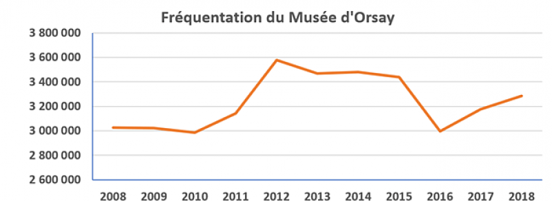 Ce succès permet au Musée d’Orsay de retrouver un peu de couleur après la chute de sa fréquentation en 2016. Mais avec 3 177 842 visiteurs (gratuits et payants), elle n’a pas encore retrouvé le niveau d’avant les attentats parisiens.
