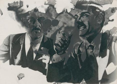 Cette idée de « carottage », la scénographie l’exprime par ses focus sur une personne donnée ou sur une scène formée par cinq-six images entremêlées au rez-de-chaussée, comme par ses longues séquences linéaires d’images éclectiques au sous-sol. Ce montage d’images n’obéit pas à un ordre établi par l’artiste mais relève de la subjectivité des commissaires. De même pour la série de photographies relatives à Athanor, une installation réalisée en 1986 à la Biennale de Venise [pavillon de la République fédérale d’Allemagne] pour laquelle Polke fut récompensé d’un Lion d’or et qu’il documenta au fur et à mesure de son évolution. Le mode de présentation choisi adopte néanmoins l’accrochage spécifique conçu par l’artiste pour certaines expositions.