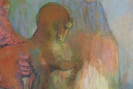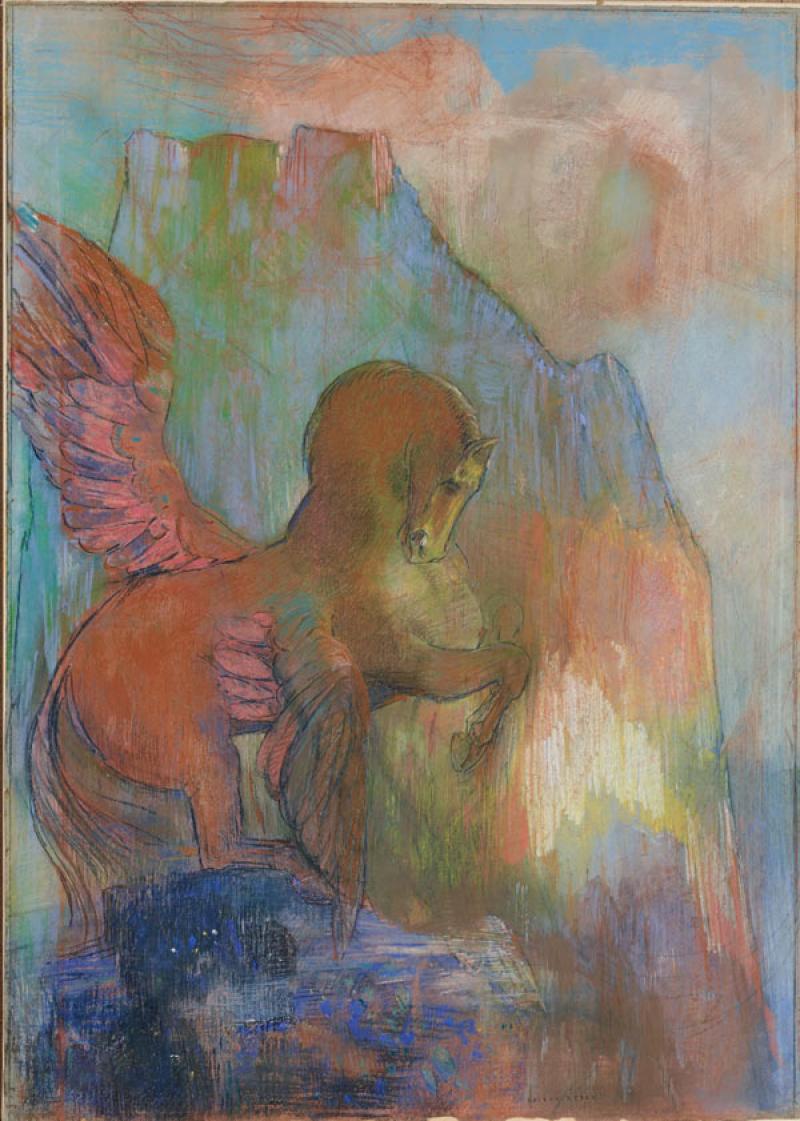 L’exposition illustre ce livre. Passé un espace d’introduction biographique, est déroulée une série de lithographies et de pastels sur le thème de l’écoute et, surtout, du silence. L’une des plus belles œuvres du parcours, Le Bateau (Vierge au halo) (1898), appartenant au Musée Van Gogh d’Amsterdam est présentée ici. Des pastels remarquables comme Chimère, monstre fantastique, têtard (1883, Kröller-Müller), Pégase (1895-1900), Roger et Angélique (vers 1910), La Liseuse (1895-1900) ou Femme dans les fleurs (Stedelijk Museum d’Amsterdam) se mêlent aux séries de lithographies bien connues par la reproduction mais peu montrées en raison de leur fragilité. Un voyage magnifique dans l’œuvre de l’artiste et les visions que lui inspiraient la littérature et la musique. La lecture du catalogue est cependant nécessaire pour comprendre les cheminements complexes de ce peintre hors du commun.