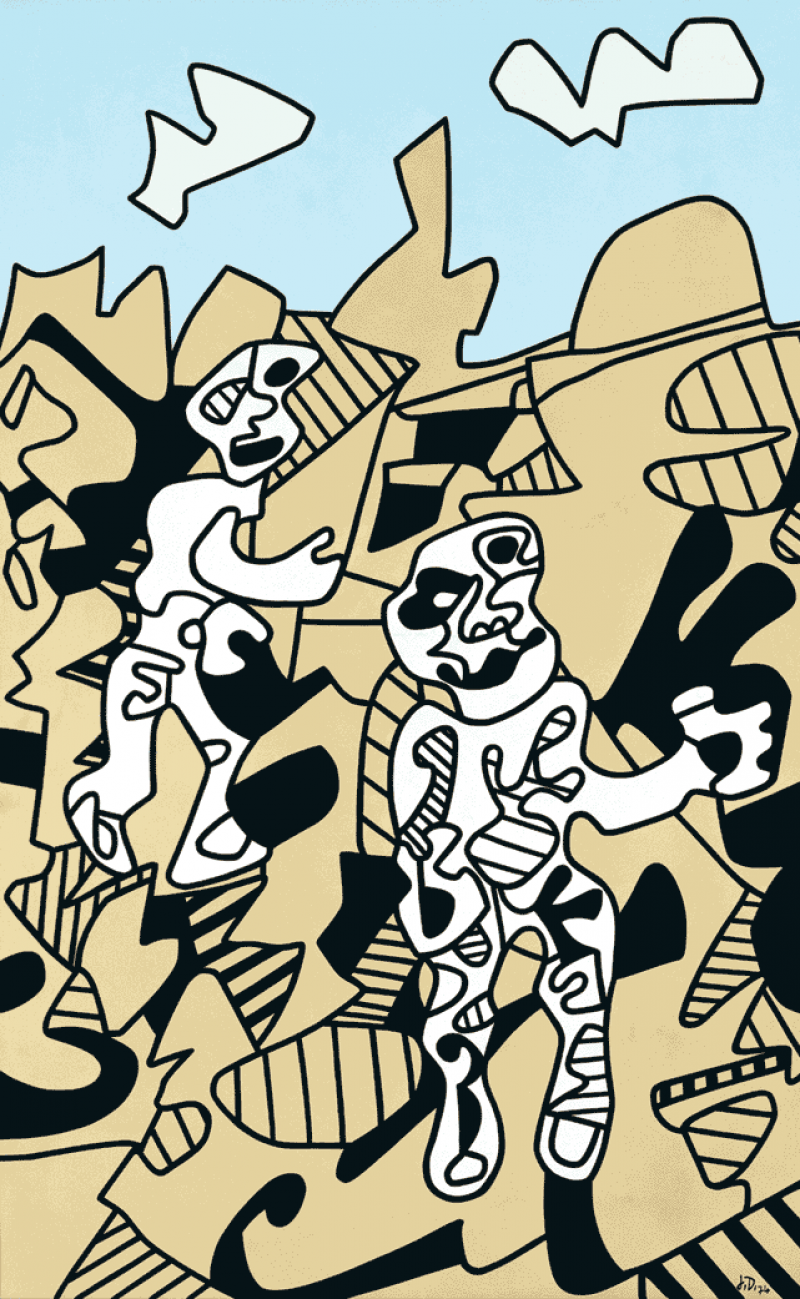 Le déménagement du siège social à Boulogne-Billancourt, en 1973, va constituer l’apogée de ce programme novateur. Le nom de l’architecte Oscar Niemeyer est évoqué, mais Renault y renonce au profit d’un maître d’ouvrage inconnu qui livre des bâtiments sans âme. C’est l’occasion pour Claude Renard de lancer un nouveau défi à l’entreprise : intégrer des œuvres monumentales in situ. Pierre Dreyfus donne son accord. Des commandes sont passées à Arman, qui réalise des bas-reliefs à partir de culasses sciées, à Jean Dewasne dont les panneaux sont installés sur plusieurs étages, à Takis qui conçoit un diptyque magnétique. Mais aussi à Soto et à Vasarely, à Julio Le Parc, qui compose sa grande fresque dans la cafétéria. Période faste. Quant à Jean Dubuffet, il investit les salons de la direction générale avec les formes peintes proliférantes de son Roman burlesque. Ce paysage profus touche cependant aux limites d’un consensus esthétique finalement assez étroit. À son contact, les réactions varient ainsi « d’une adhésion sans réserve à une surprise plus ou moins bienveillante, voire à une désapprobation furieuse », note Micheline Renard [Renault, la collection d’art, Flammarion]. « De guingois », les personnages de Dubuffet « imposent le spectacle d’un monde de l’irrationnel et de l’humour, qui fait mine d’être régressif, chahuteur, grimacier. On doit le sentir confusément dans ces salons où l’on discute affaires et technique », glisse non sans malice Jacques Michel dans un article du Monde publié en 1977 [Jean Robert Bouyeure, Le Sac du Salon d’été, l’affaire Dubuffet – Régie Renault, L’Harmattan].