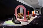 Vue de l'exposition « Zones de confort », détail de la scénographie réalisée par le studio GGSV, à la Galerie Poirel, Nancy. © Photo : Michel Giesbrecht.