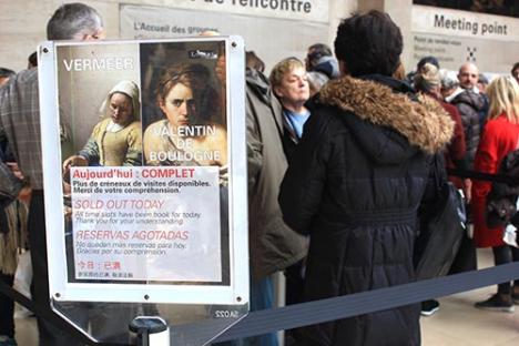 Depuis mercredi 22 février, jour d'ouverture des deux expositions du hall Napoléon (qui ne peut pas accueillir plus de 500 visiteurs à la fois), le Louvre, a mis en place un système de réservation inédit, qui a mécontenté bien des visiteurs et submergé le personnel d'accueil. Pour visiter l'exposition blockbuster « Vermeer », mais aussi la plus confidentielle « Valentin de Boulogne » - l'entrée des deux manifestations est conjointe - les visiteurs doivent obtenir, et cela uniquement à la billetterie du musée sur place, un créneau horaire le jour même de leur visite ; au prix d'une longue file d'attente.
